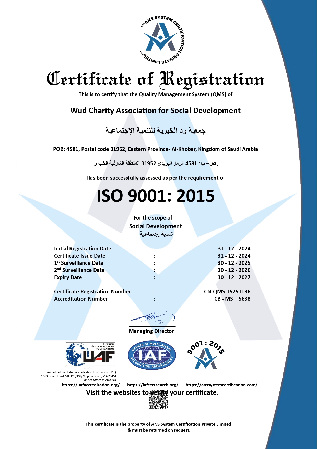 شهادة إدارة الجودة ISO 9001:2015